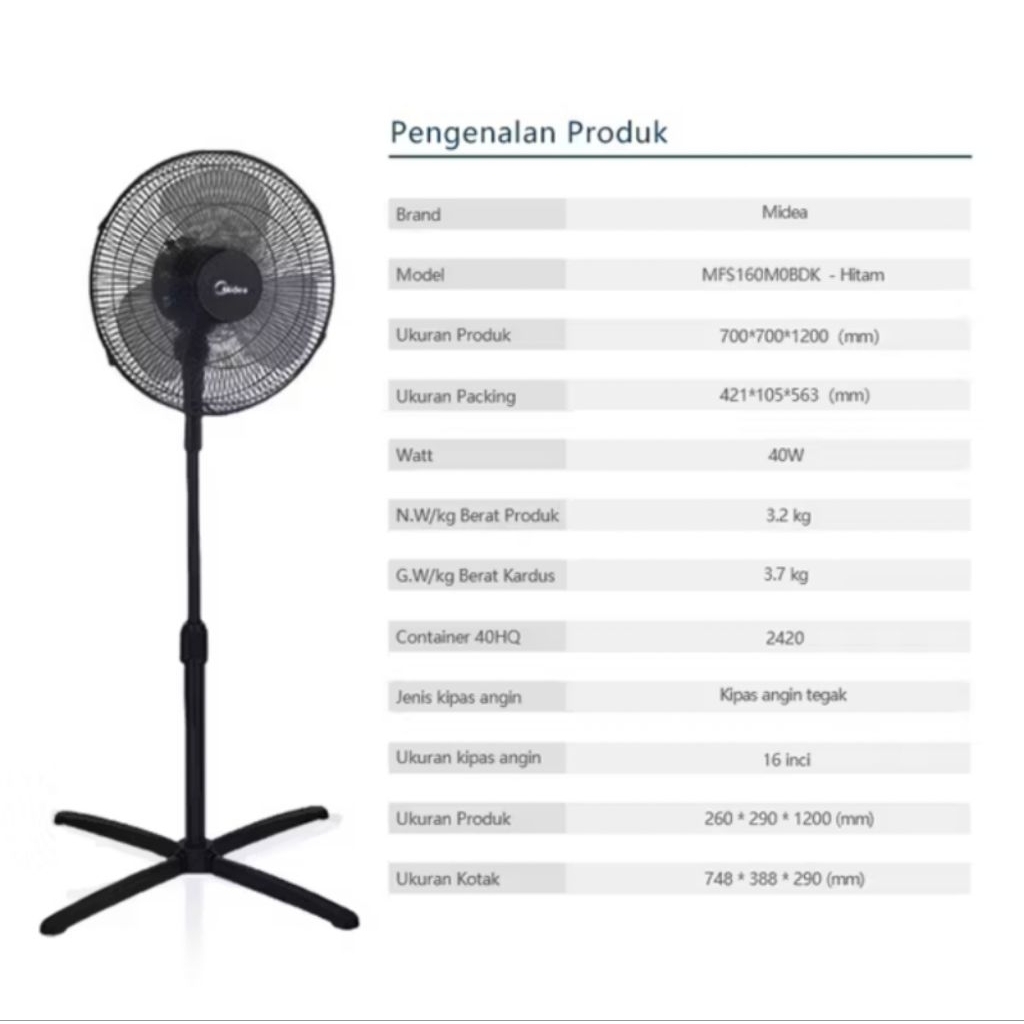 MIDEA MFS160M0BDW / BDK Kipas Angin Stand Fan 16 Inch 40 Watt . Baru & Bergaransi