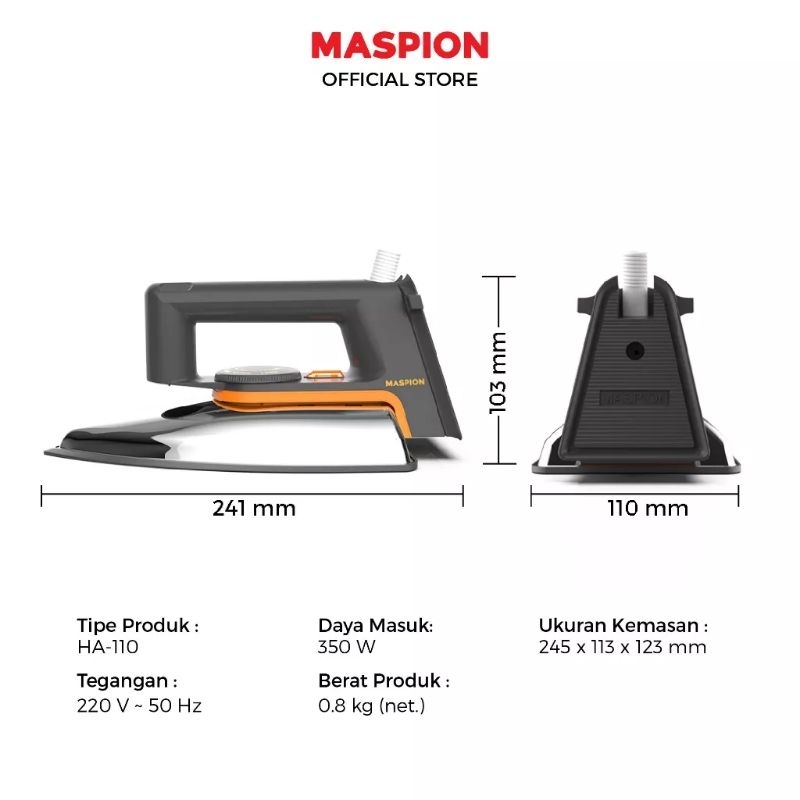 Setrika Maspion HA110 / Setrika EI2000B – Setrika Non Stick 395 Watt Black