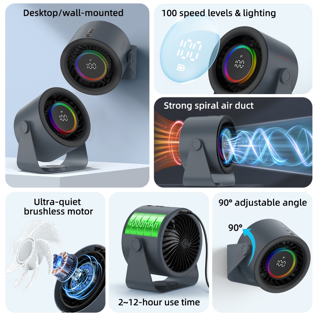 Goojodoq GFS008 kipas Angin 4000mAh bisu Strong Wind 100 Gear Wind Speed kipas dinding Digital Display Adjustable Turbo