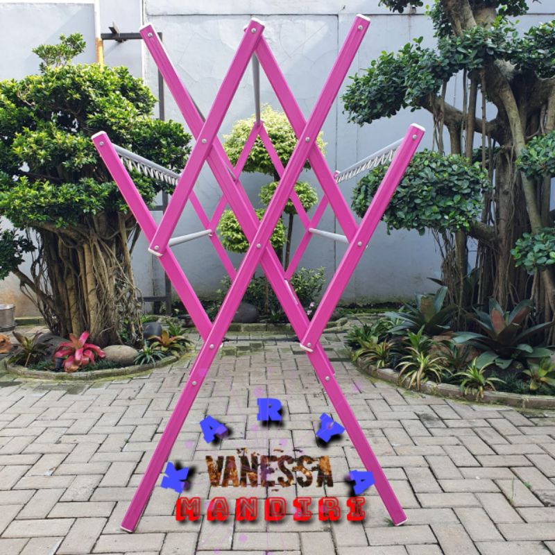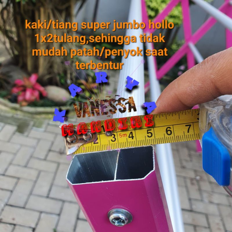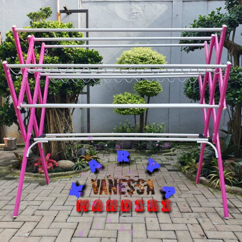 PREMIUM - Jemuran Baju Super Jumbo p12 / Pakaian / Lipat / Aluminium Warna /180 CM / 1,8 Meter / pink