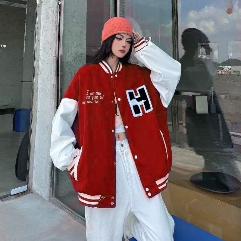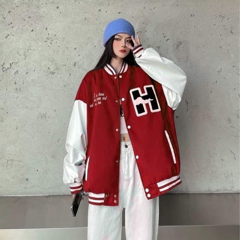 Jaket Varsity Big Size (S-6XL) Jaket Baseball Kancing Bomber Inisaial H Logo Oversize S M L XL 2XL 3XL 4XL 5XL Fleece Un
