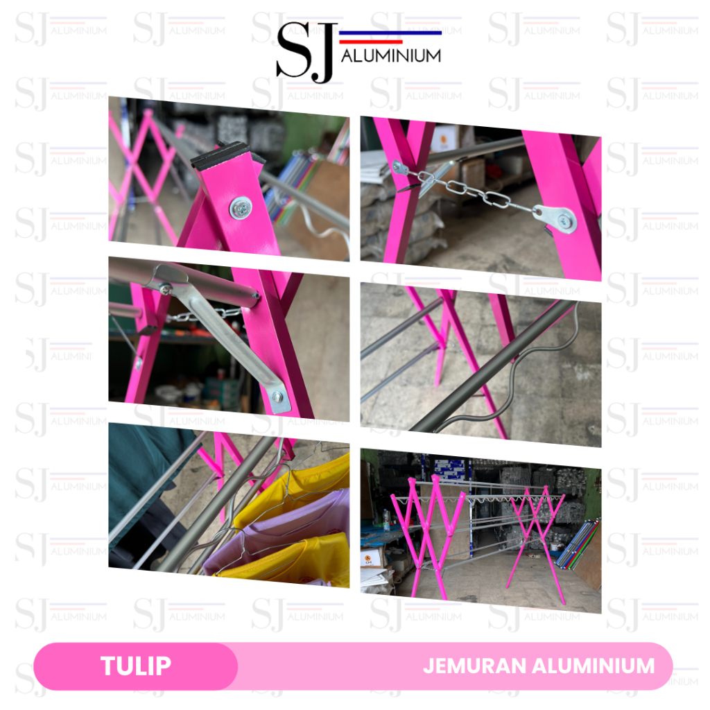 Jemuran Aluminium TULIP - Jemuran Baju & Pakaian - Jemuran Handuk Lipat - Kuat Tahan 20 KG - Ukuran Jumbo 180 CM Warna P