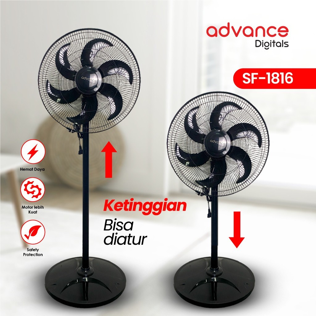 Kipas Angin Berdiri Advance SF16A/18"SF-1816 16inch 40Watt 3 Speed Hembusan Angin Kencang Garansi Resmi 1 Tahun - Kipas