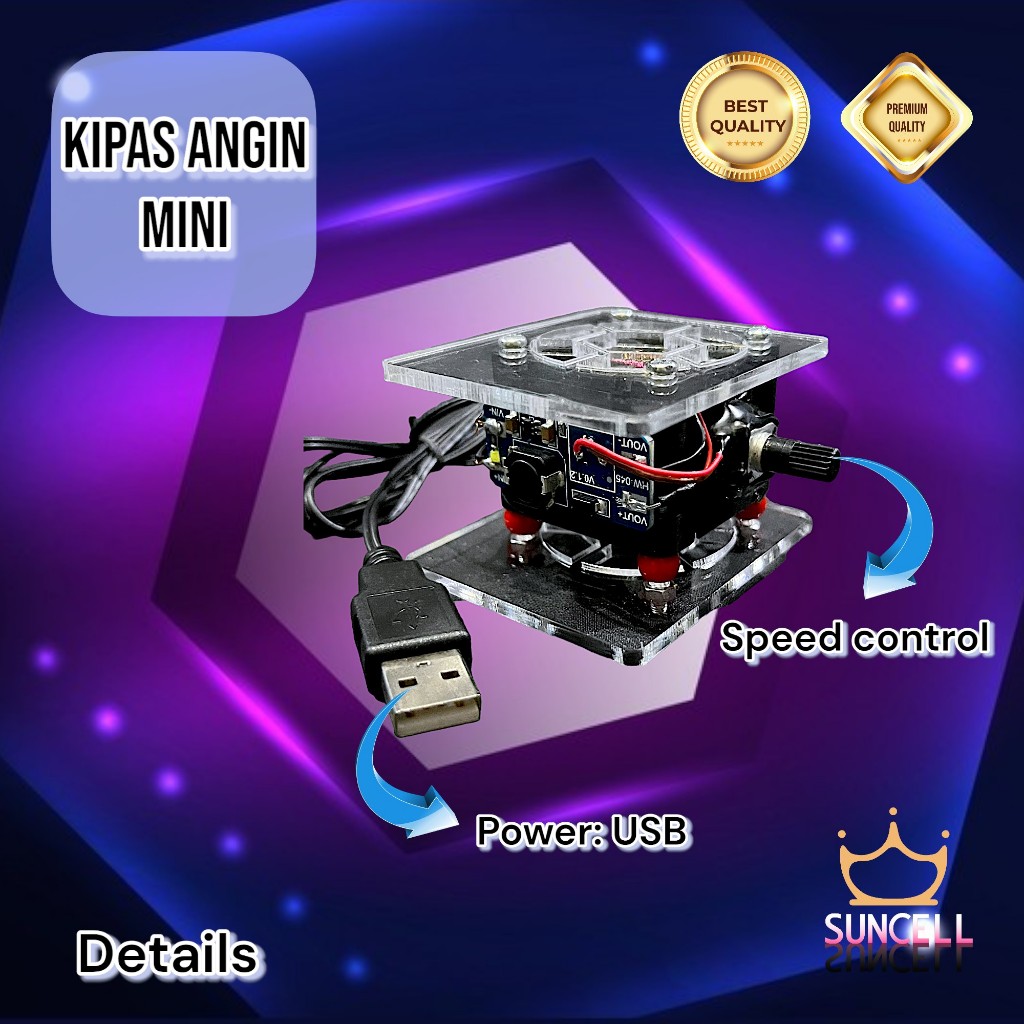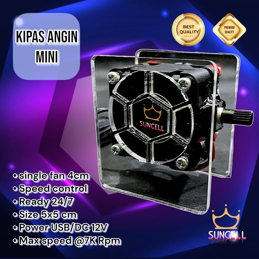 Kipas Mini Portable Fan 4x4 Cm USB Angin Besar Akrilik