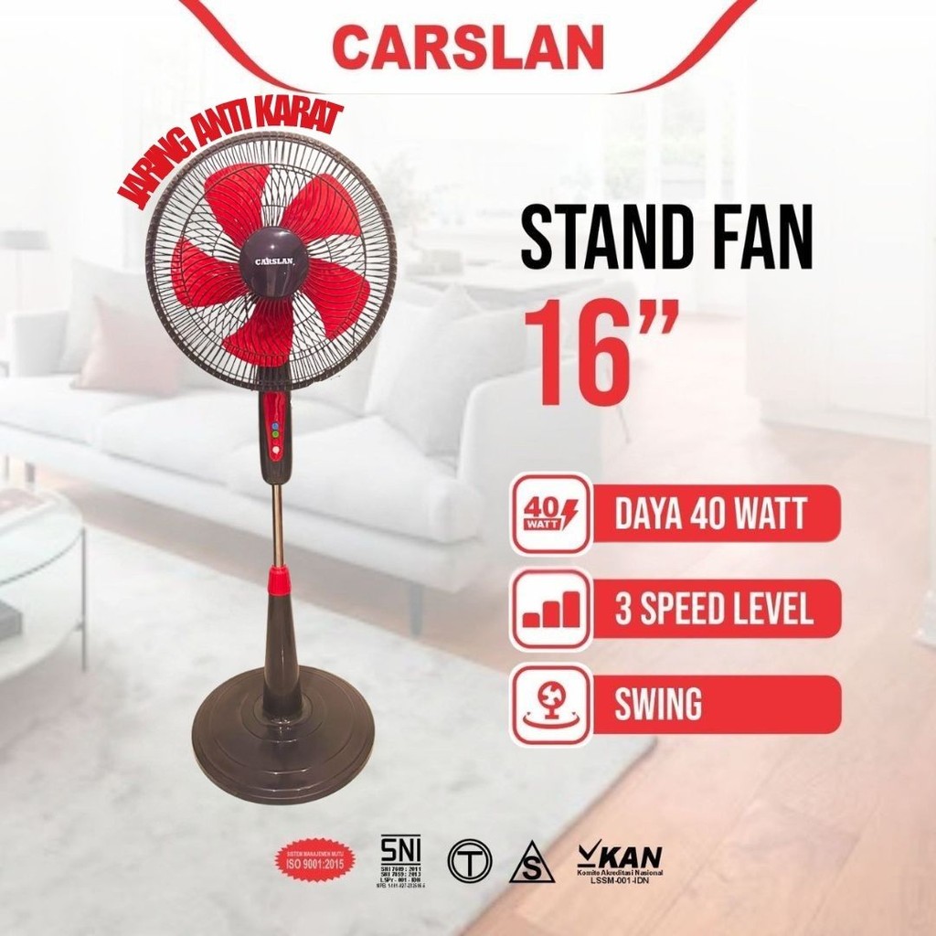KIPAS ANGIN BERDIRI CARSLAN 16INCH 40WATT 3 SPEED HEMBUSAN ANGIN KENCANG