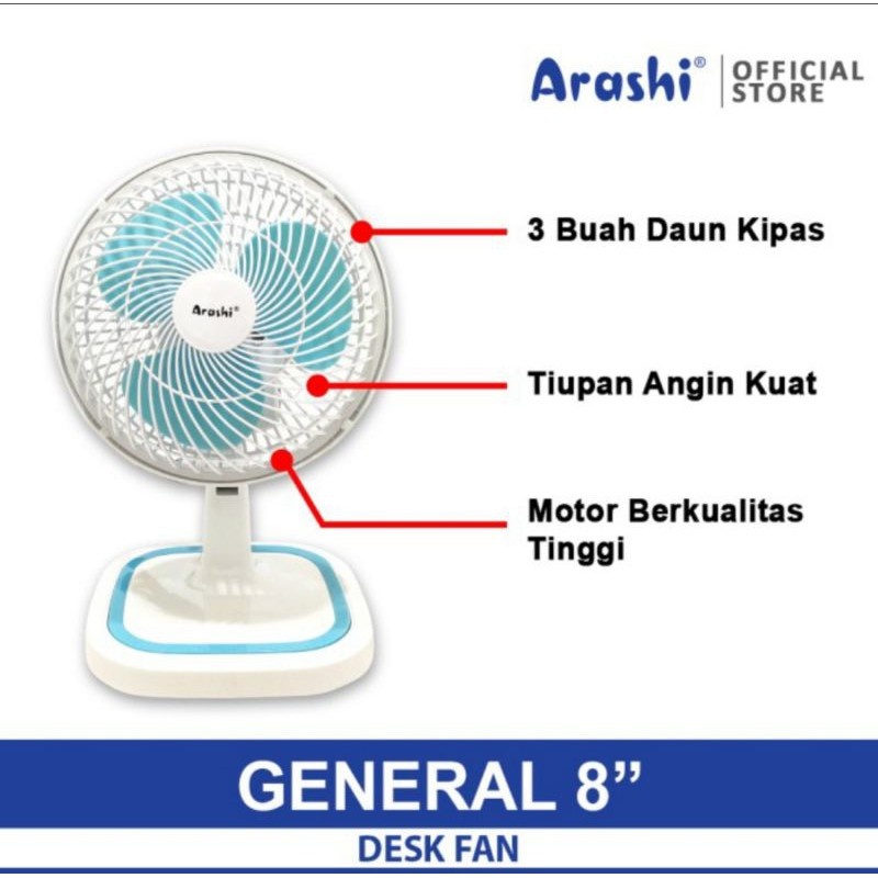 ARASHI Kipas Angin Meja General 8 Inch / Deskfan - Garansi 1 Tahun