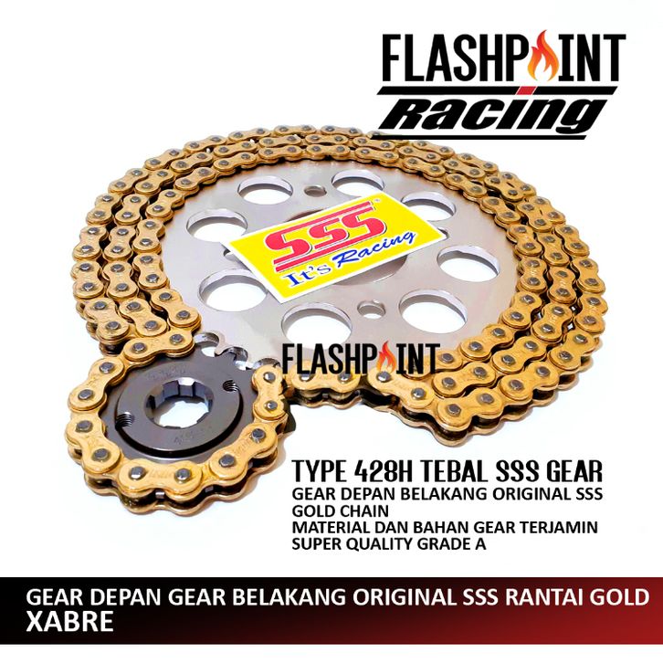 (FREE ONGKIR) GEAR SET FULL SSS RANTAI GOLD 428H XABRE 428 H GIRSET GIR GEAR GEARSET RANTE GER TIPIS RANTAI