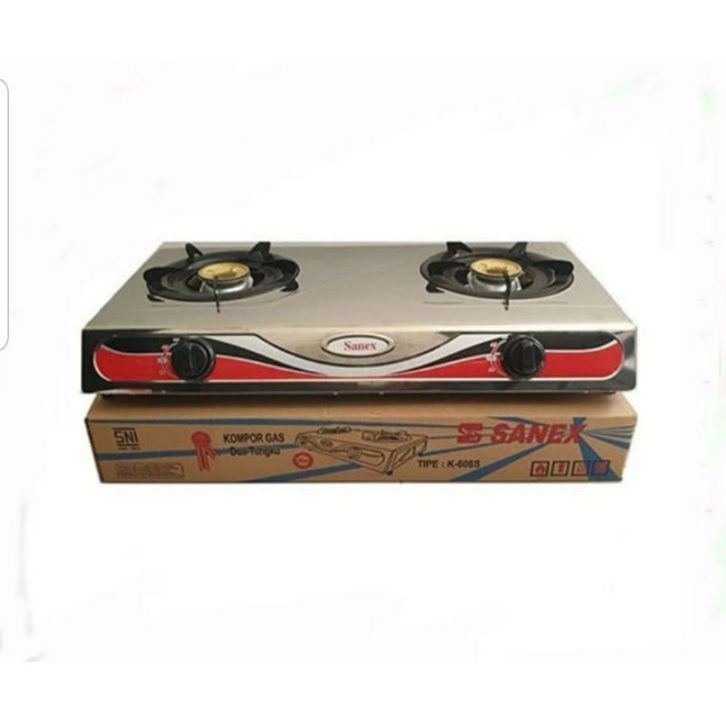 Kompor 2 tungku - Kompor gas - Kompor gas 2 tungku - Sanex K-608S Kompor Gas 2 tungku Stainles pilih + paket selang