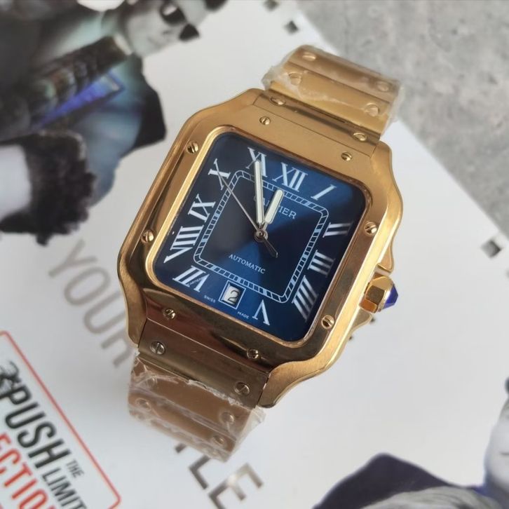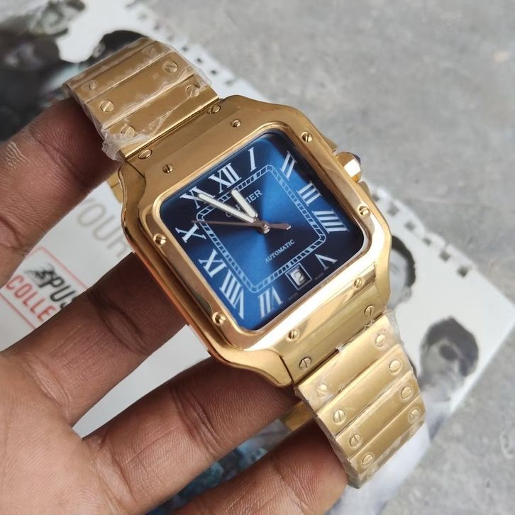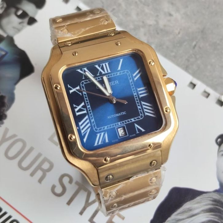 JAM TANGAN PRIA CARTIER MEDIUM ROSEGOLD BLUE STAINLESS STEEL - FREE ACCESORIES - FREE ONGKIR