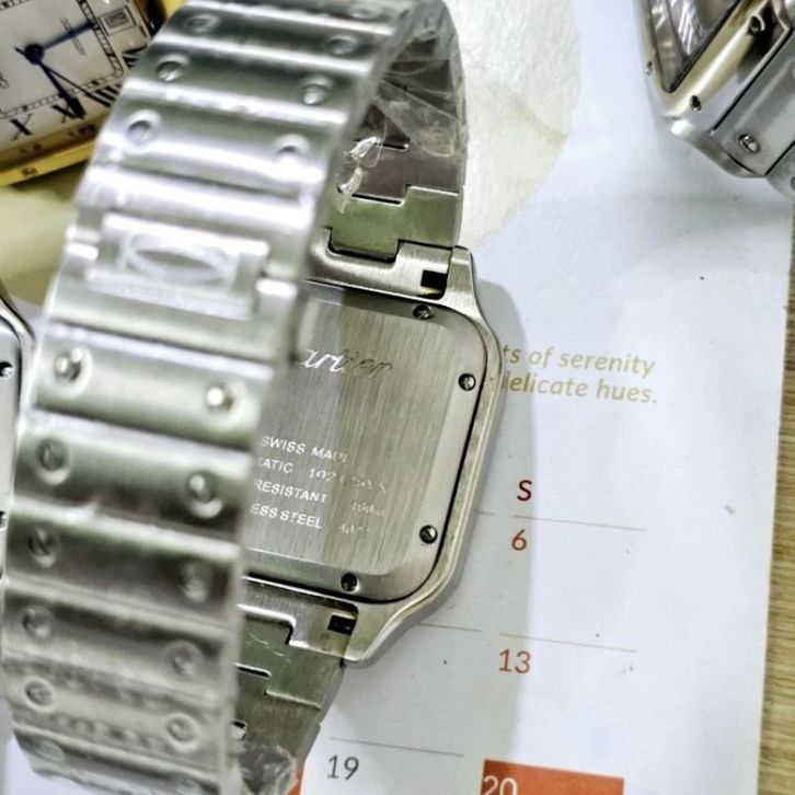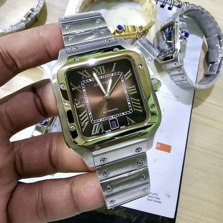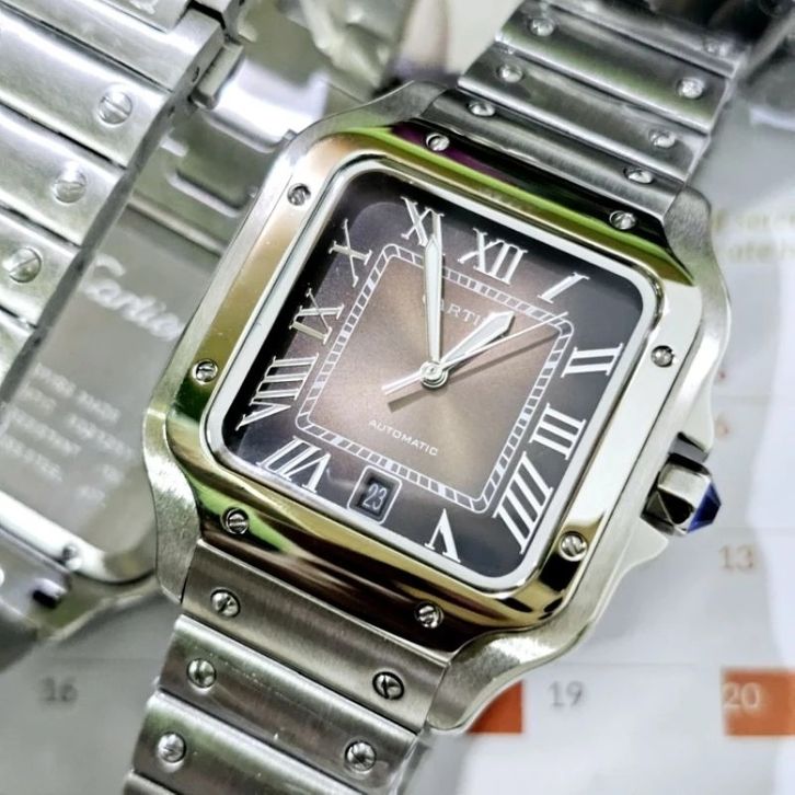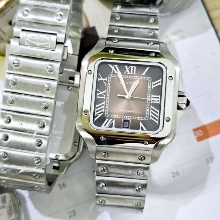 JAM TANGAN PRIA CARTIER SANTOS MEDIUM SILVER BROWN STAINLESS STEEL FREE ONGKIR - FREE BOX