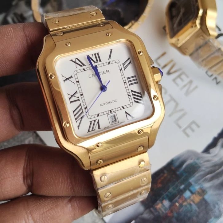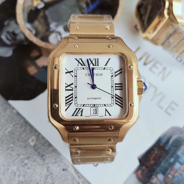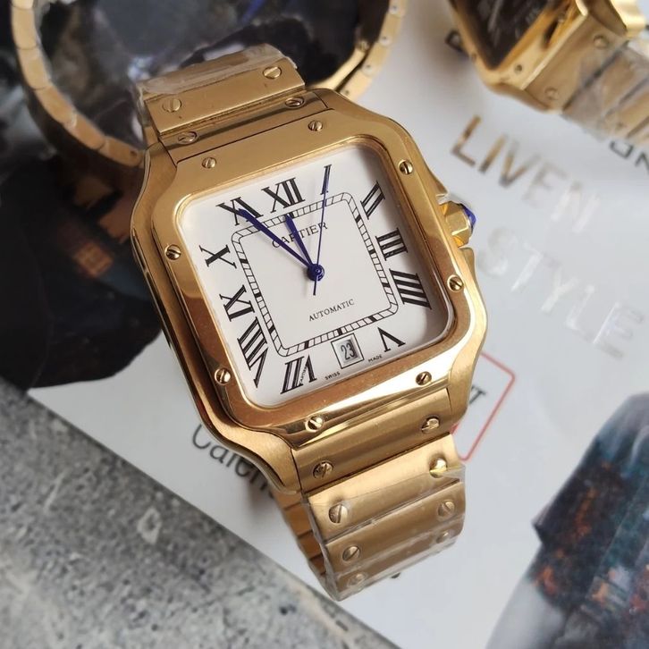 JAM TANGAN PRIA CARTIER MEDIUM GOLD WHITE STAINLESS STEEL FREE ONGKIR - FREE BOX
