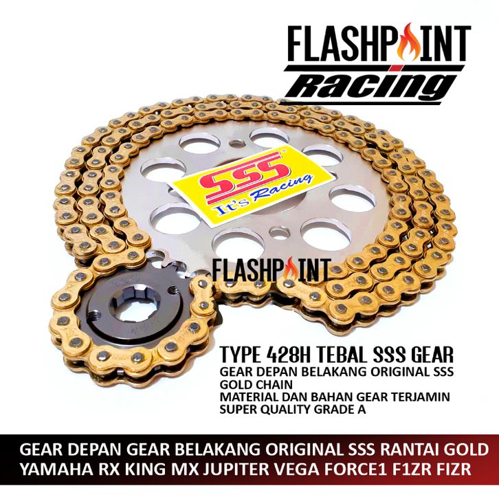(FREE ) GEAR SET SSS RANTAI GOLD 428H RX KING MX JUPITER VEGA FORCE1 F1ZR FIZR GEARSET GIRSET GERSET GIR GOLD GER TIPIS