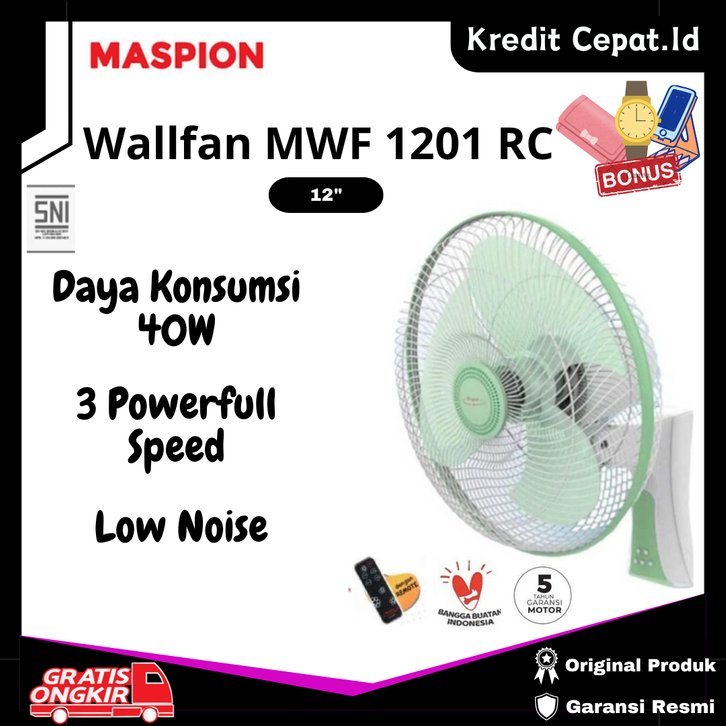 WallFan Maspion MWF 1201 RC Kipas Dinding Remote 12 inch - Garansi Resmi - Kredit Cepat.Id