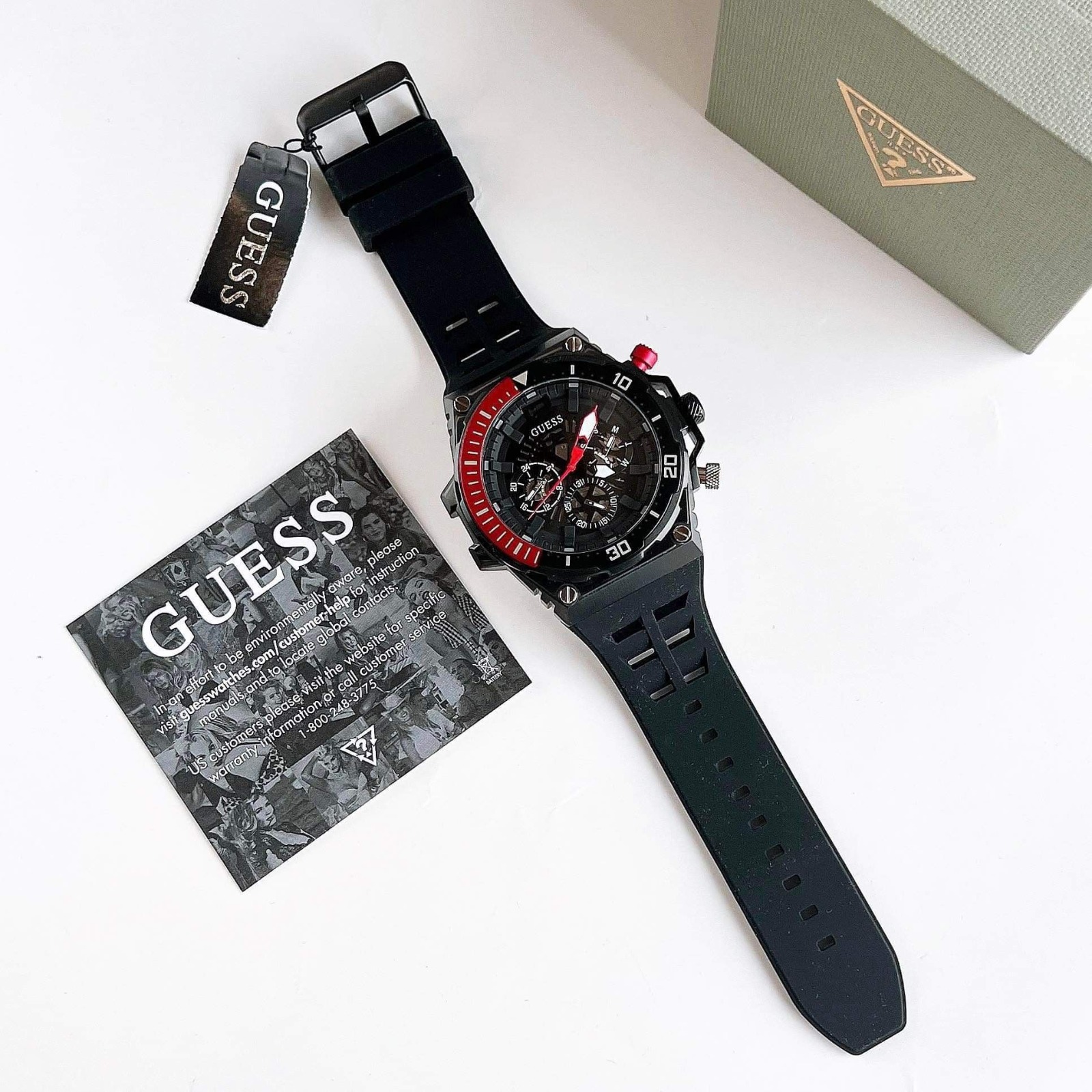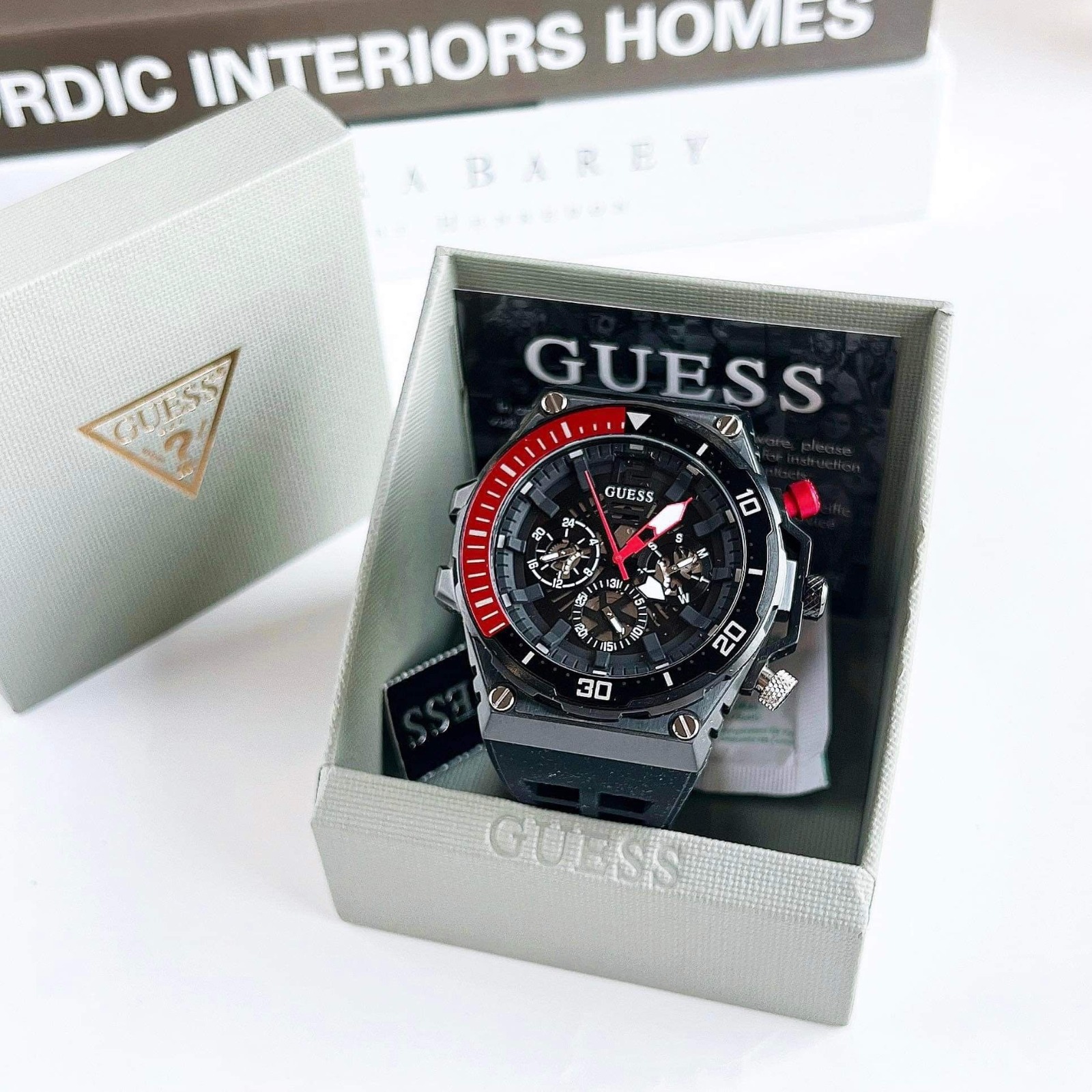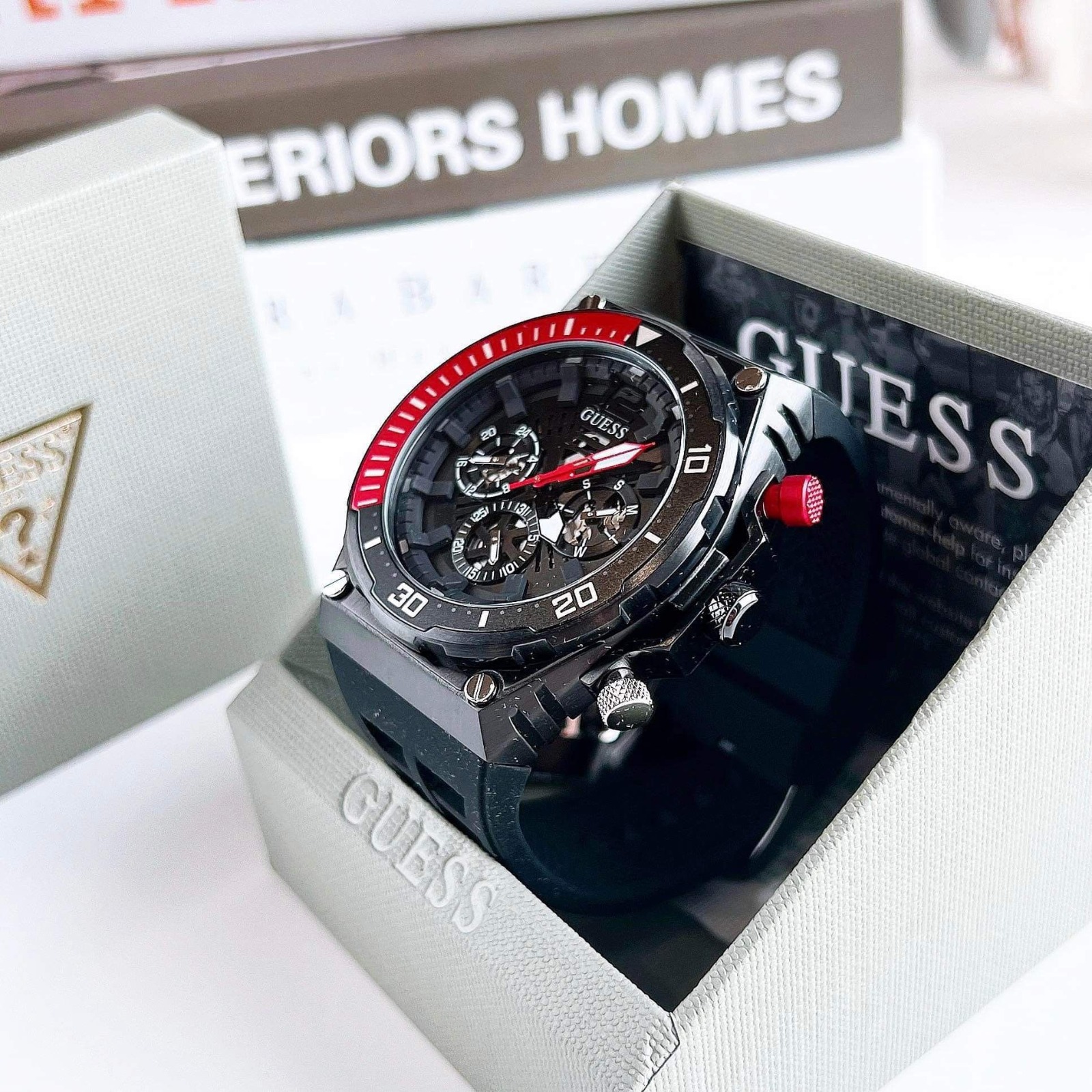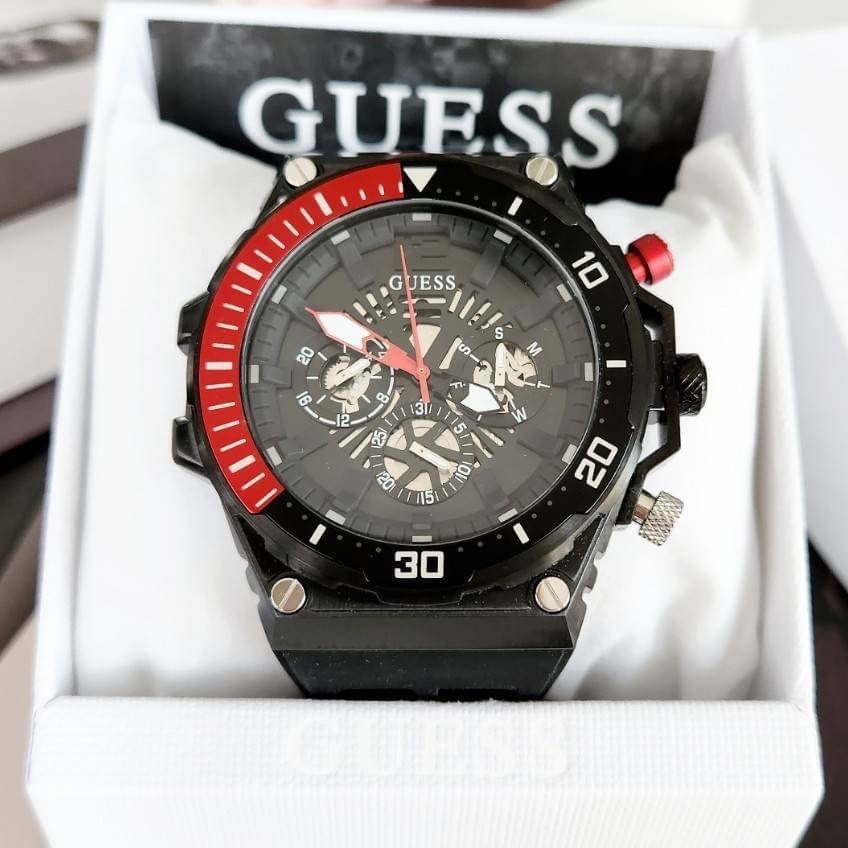 JAM TANGAN PRIA GUESS GW0443G2 BLACK LIST RED RUBBER FREE ONGKIR - FREE BOX