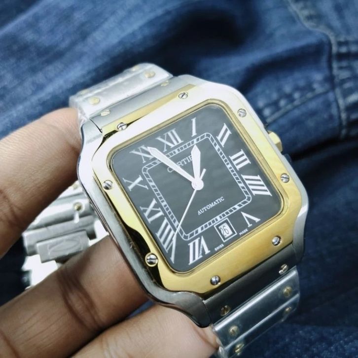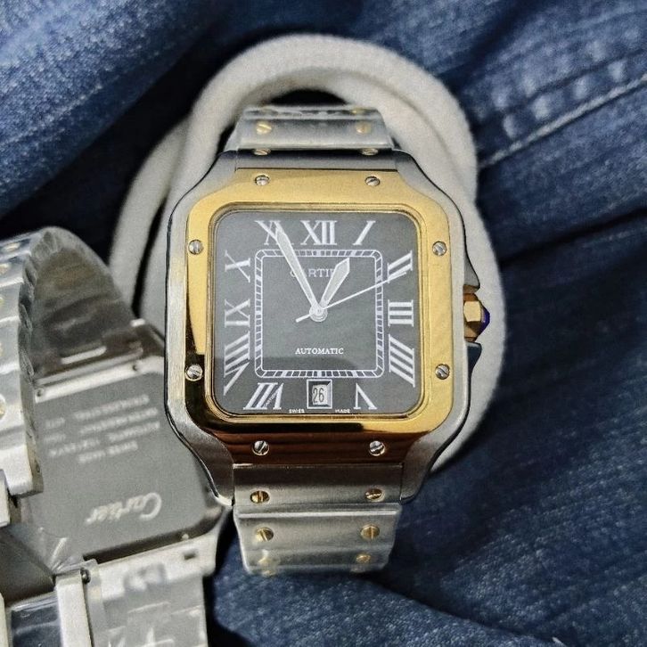 JAM TANGAN PRIA CARTIER SANTOS MEDIUM SILVER COMBI BLACK STAINLESS STEEL FREE ONGKIR - FREE BOX