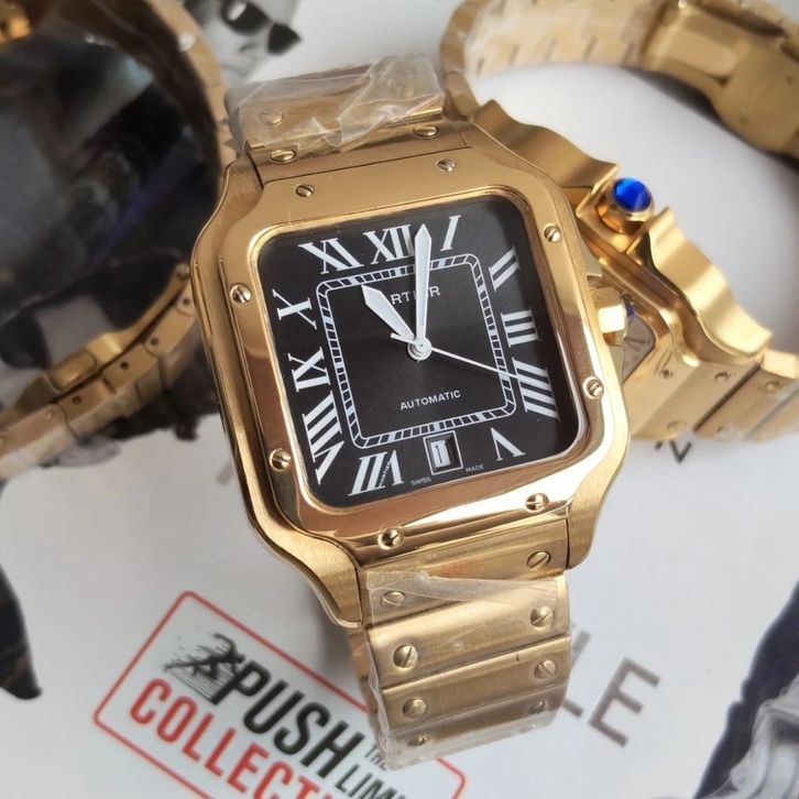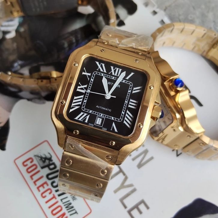 JAM TANGAN PRIA CARTIER MEDIUM GOLD BLACK STAINLESS STEEL ORIGINAL- FREE ACCESORIES - FREE ONGKIR