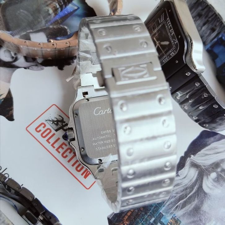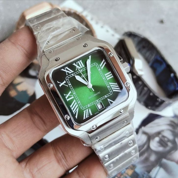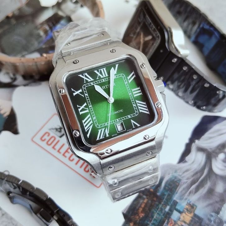 JAM TANGAN PRIA CARTIER MEDIUM SILVER GREEN STAINLESS STEEL- FREE ACCESORIES - FREE ONGKIR