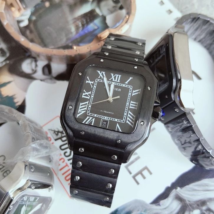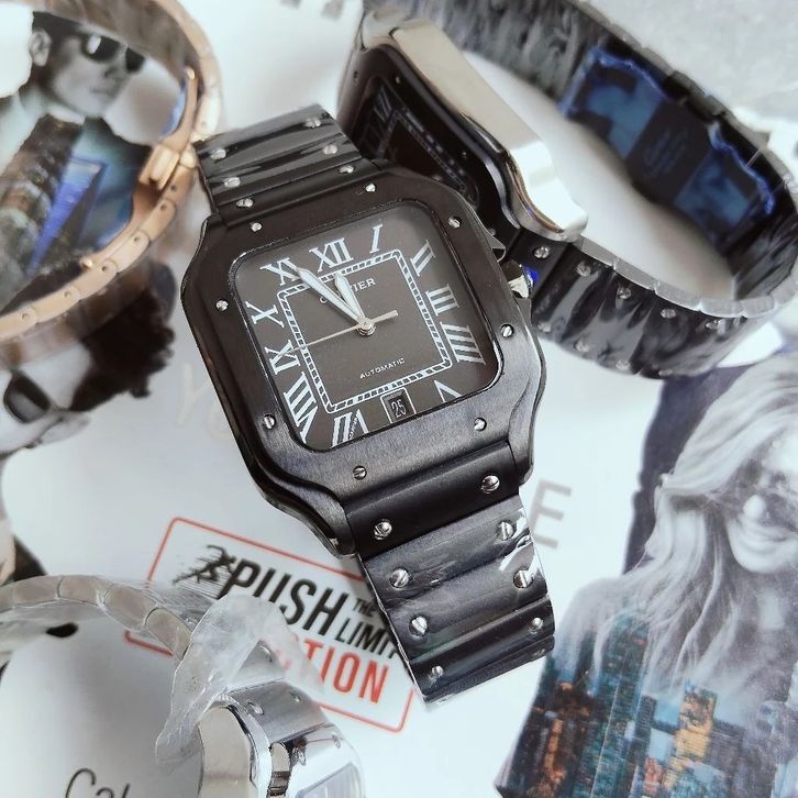 JAM TANGAN PRIA CARTIER MEDIUM FULL BLACK STAINLESS STEEL FREE ONGKIR - FREE BOX