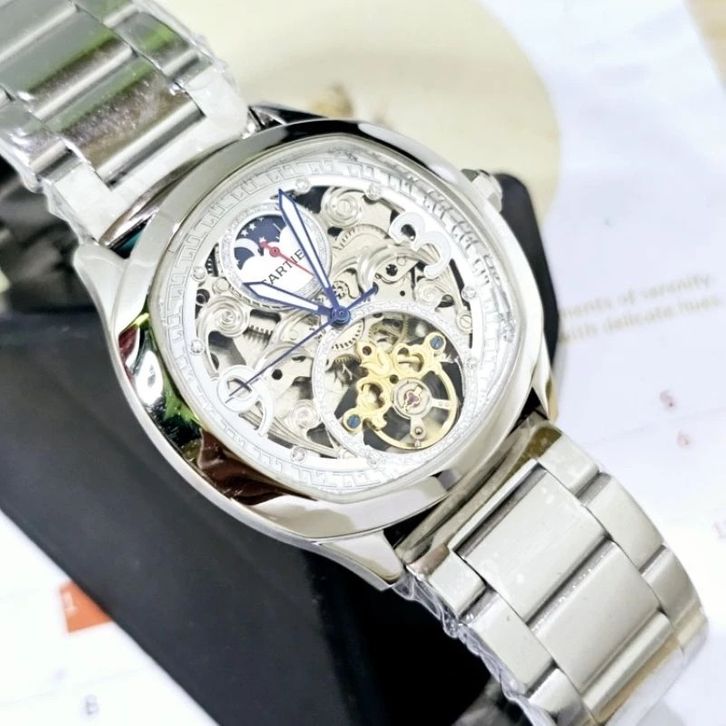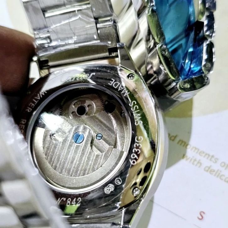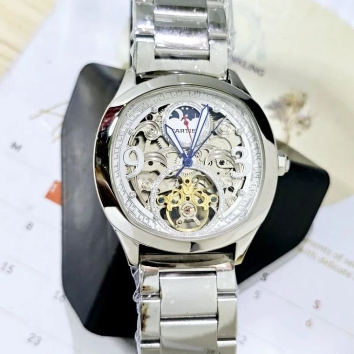 JAM TANGAN PRIA CARTIER SKELETON SILVER BLACK STAINLESS STEEL FREE ONGKIR - FREE BOX