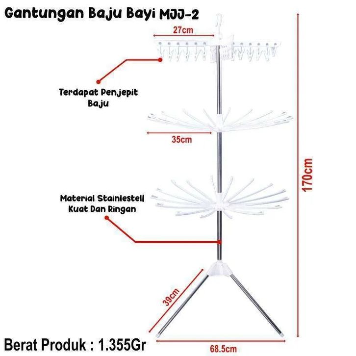 Jemuran pakaian - Foldable Clothes Drying Airer Rak jemuran lipat - Jemuran Menara Lipat Jemuran Baju Susun 3