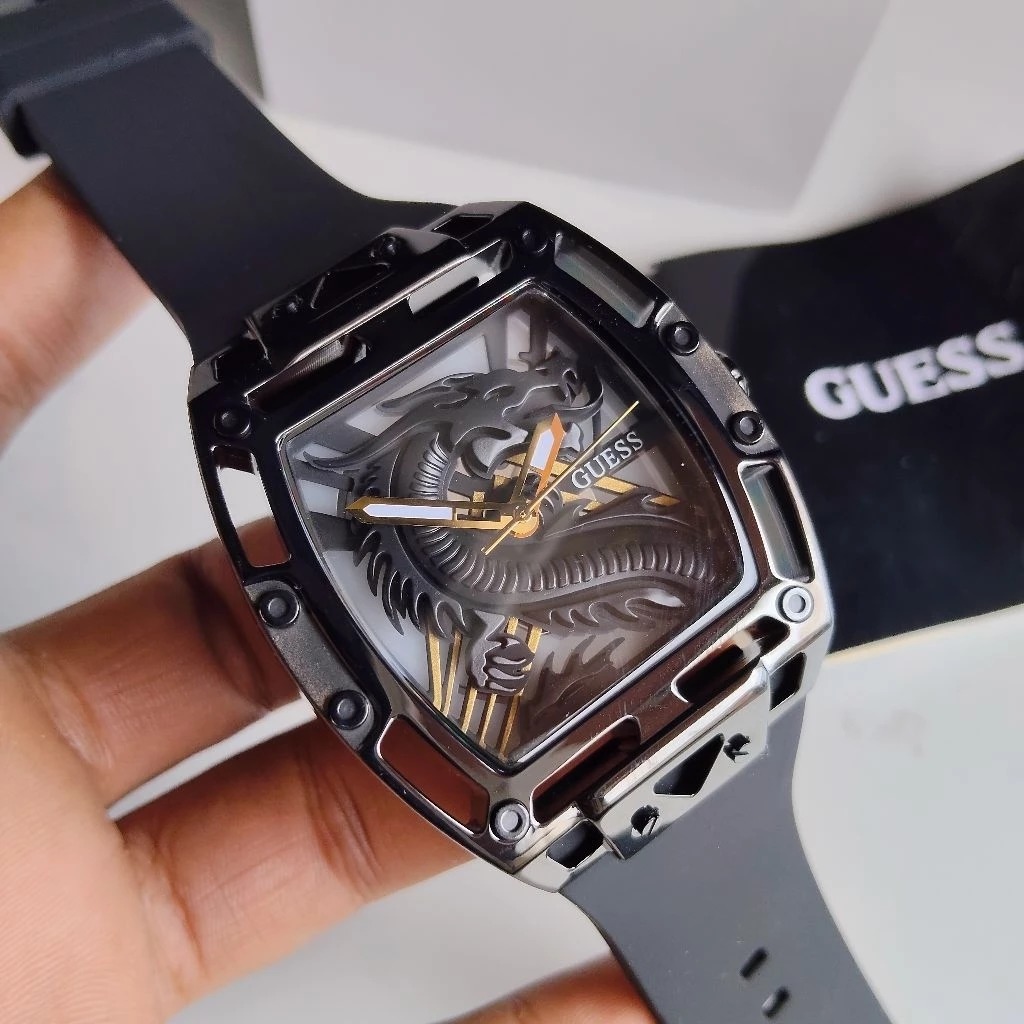 JAM TANGAN PRIA GUESS GW0648G1 RUBBER FULL BLACK FREE ONGKIR - FREE BOX