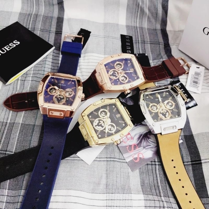 JAM TANGAN PRIA GUESS GW0202G4 ROSEGOLD NAVY RUBBER FREE ONGKIR - FREE BOX
