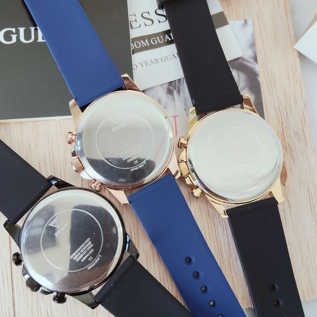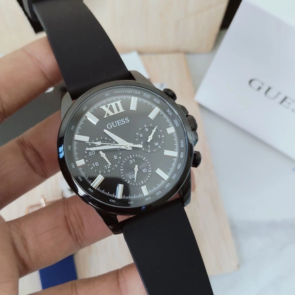 JAM TANGAN PRIA GUESS GW0910G3 FULL BLACK RUBBER FREE ONGKIR - FREE BOX