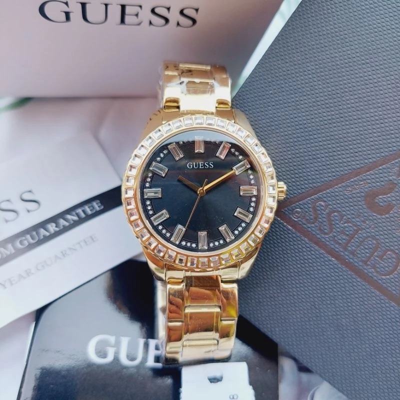 JAM TANGAN WANITA GUESS GW0111L2 GOLD BLACK STAINLESS STEEL FREE ONGKIR - FREE BOX