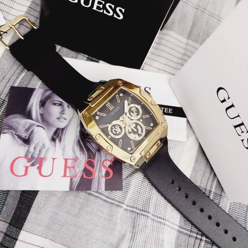 JAM TANGAN PRIA GUESS GW0202G1 ROSEGOLD BLACK RUBBER FREE ONGKIR - FREE BOX