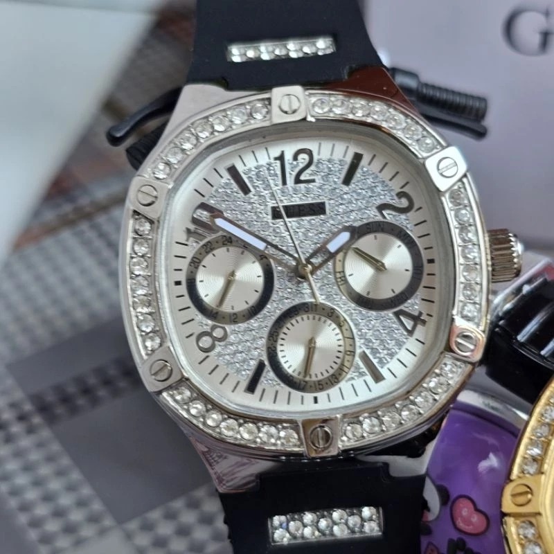 JAM TANGAN PRIA GUESS GW0619L1 SILVER BLACK RUBBER FREE ONGKIR - FREE BOX