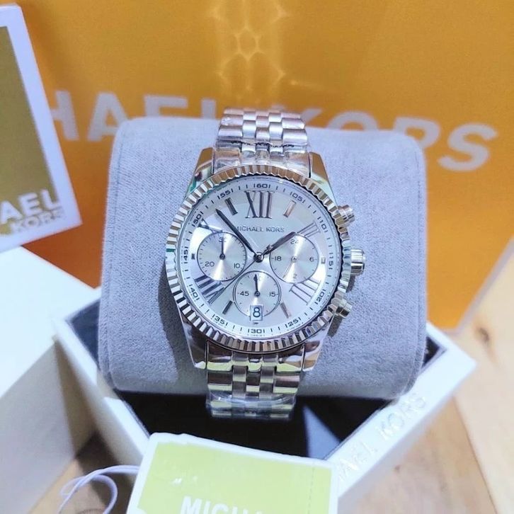 JAM TANGAN WANITA MICHAEL KORS LEXINGTON MK5555 SILVER STAINLESS STEEL ORIGINAL - FREE ONGKIR