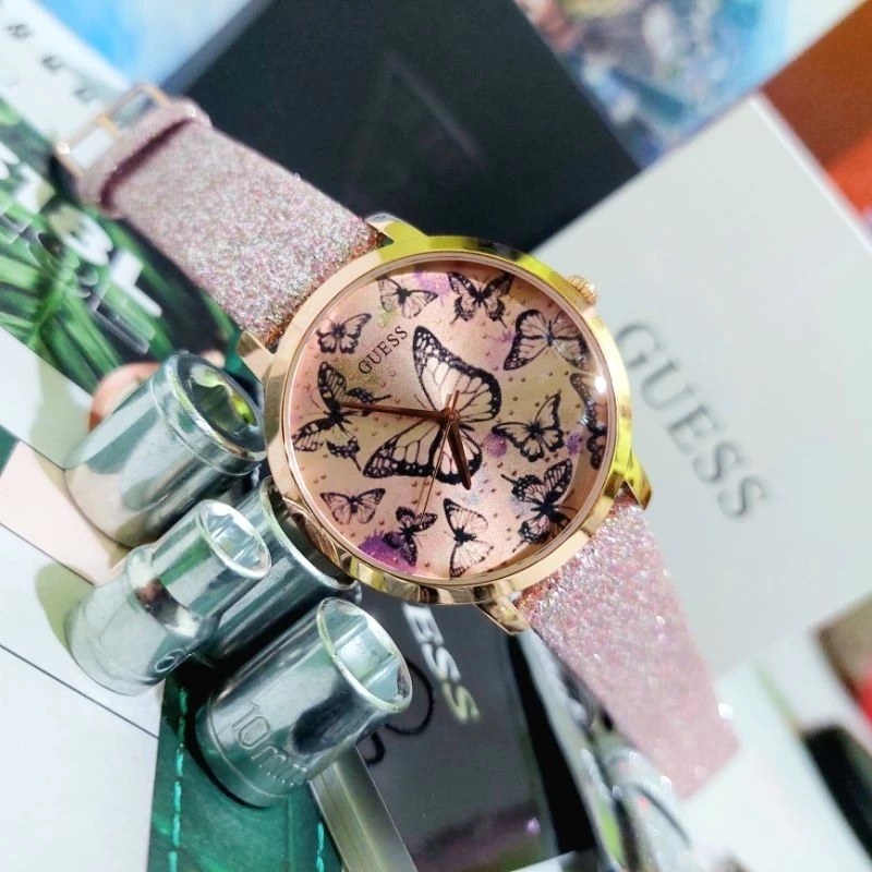 JAM TANGAN WANITA GUESS GW0008L2 ROSEGOLD PINK LEATHER ORIGINAL - FREE ONGKIR