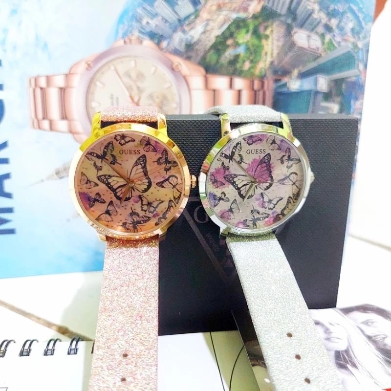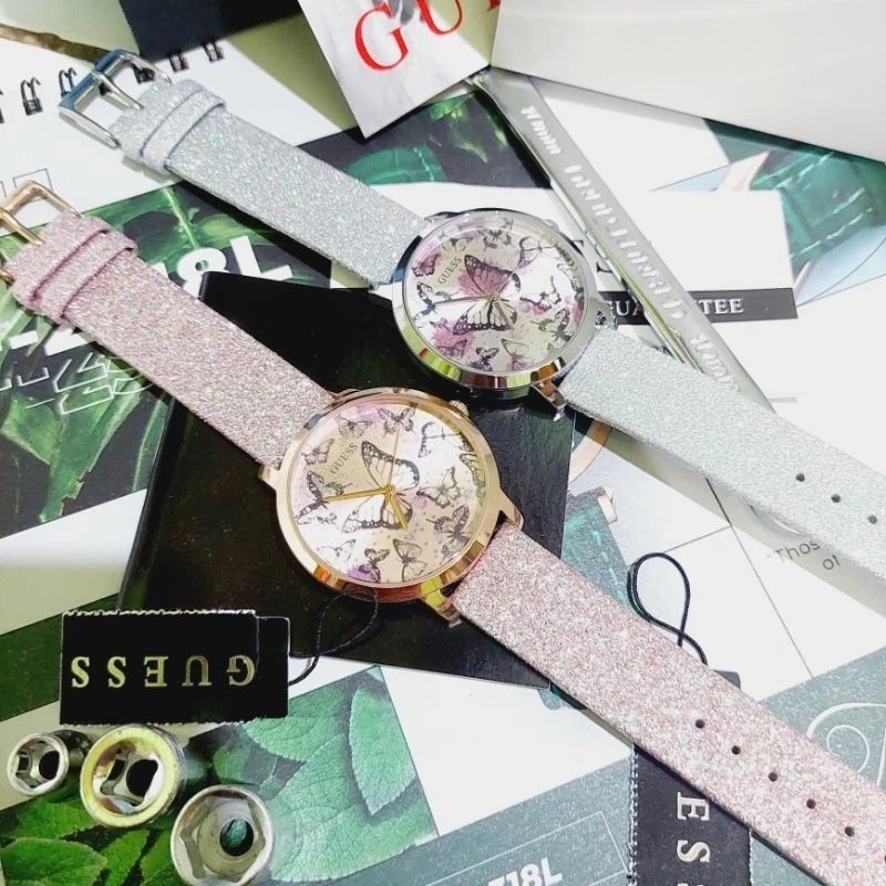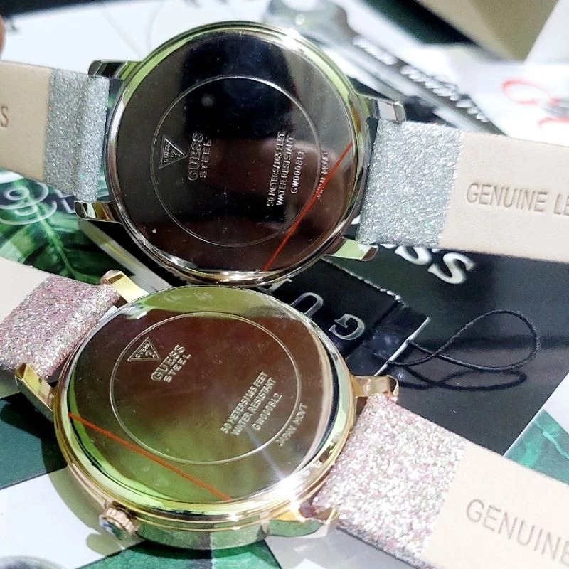 JAM TANGAN WANITA GUESS GW0008L1 SILVER WHITE LEATHER ORIGINAL - FREE ONGKIR