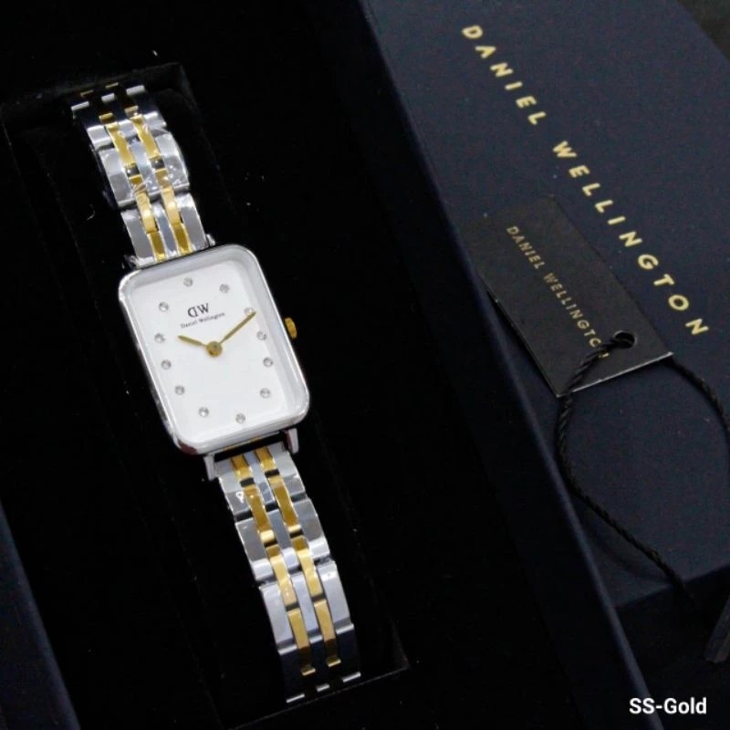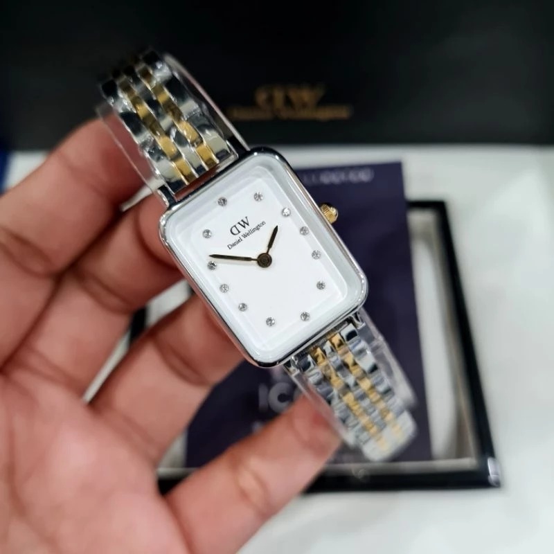 JAM TANGAN WANITA DANIEL WELLINGTON QUADRO LUMINE PRESSED 5-LINK SILVER COMBI ROSEGOLD ORIGINAL - FREE ONGKIR