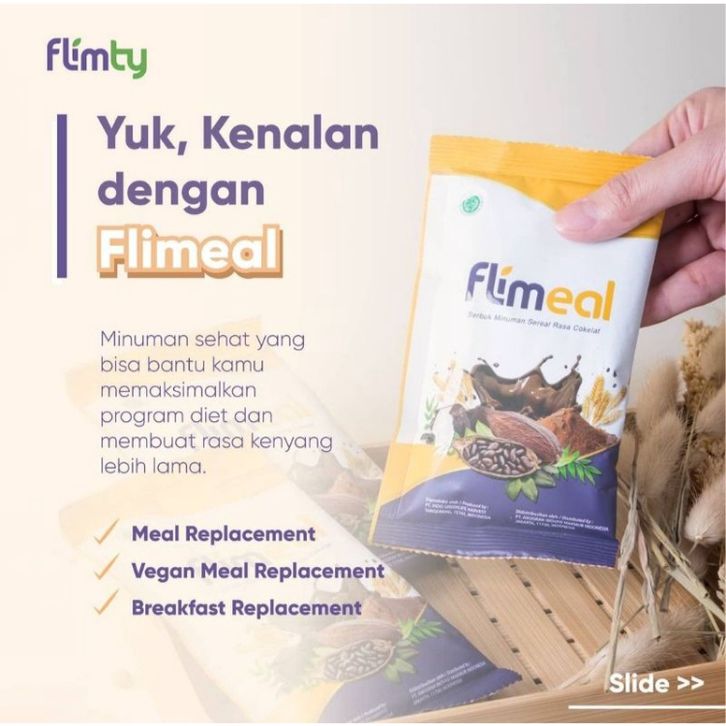 FLIMEAL 1 Box isi 12 Sachet (FLIMTY MEAL) SUSU CEREAL UNTUK DIET RASA COKLAT