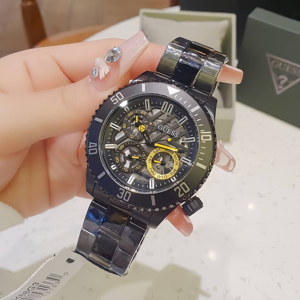 JAM TANGAN PRIA GUESS GW0488G3 FULL BLACK STAINLESS STEEL FREE ONGKIR - FREE BOX