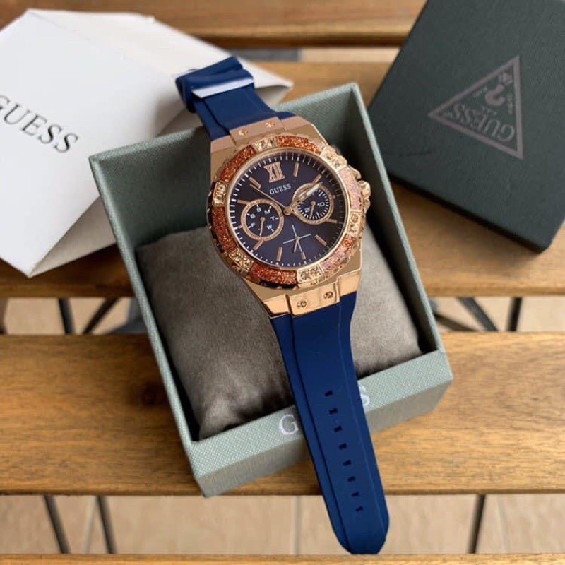 JAM TANGAN WANITA GUESS W1053L1 ROSEGOLD BLUE RUBBER FREE ONGKIR - FREE BOX