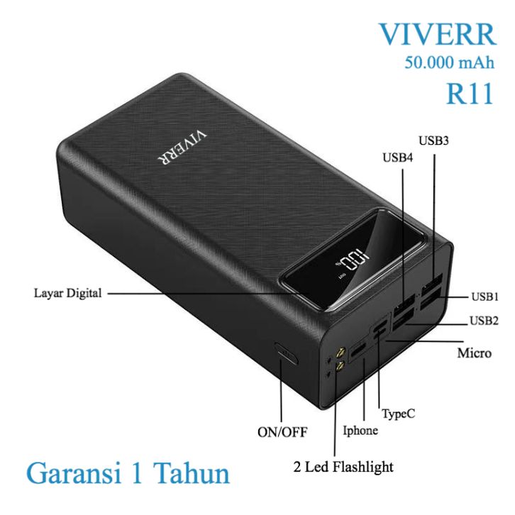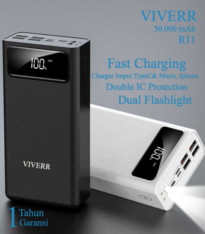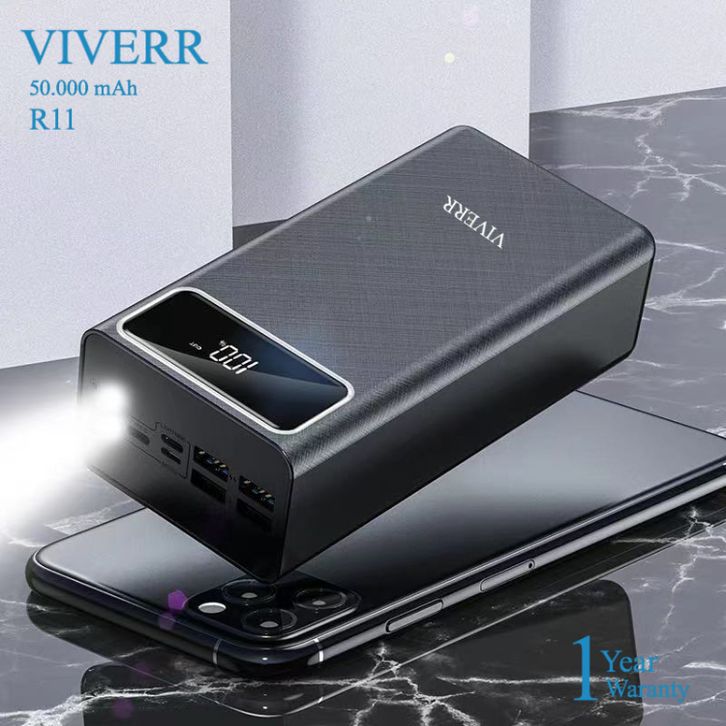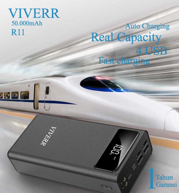 VIVERR Powerbank R11 kapasitas 50.000 Mah 4 USB fast charging Output Garansi 1 Tahun.