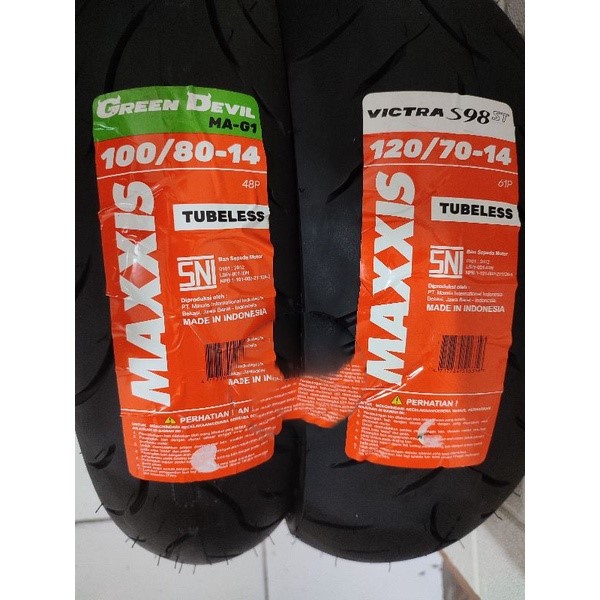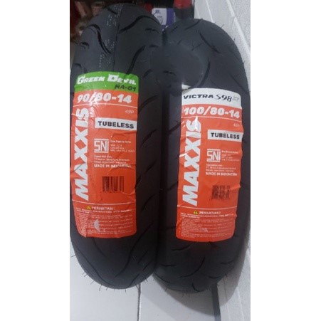 Sepasang Maxxis LEXY 90/80-14 & 110/80-14 tubles green devil & victra S98st
