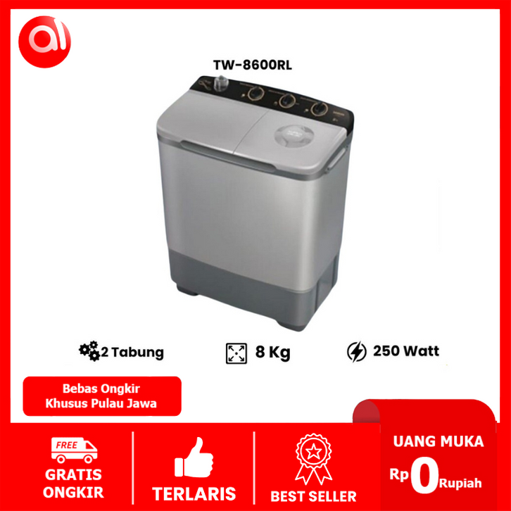SANKEN MESIN CUCI 2 TABUNG 8KG TW-8600RL HITAM GARANSI RESMI TWIN TUB WASHING MACHINE TW8600RL GRATIS ONGKIR