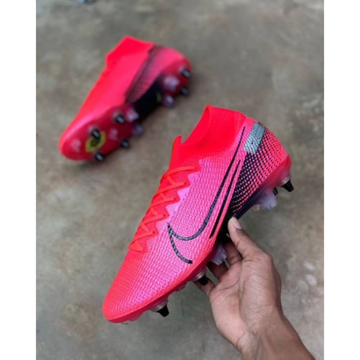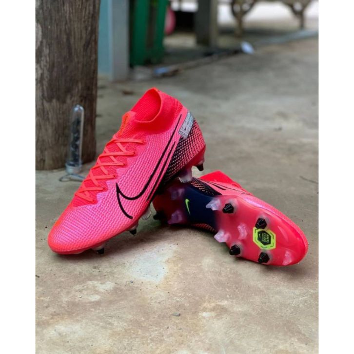 Sepatu Bola Nike Mercurial Superfly 7 Elite Laser Crimson Black SG ( Pull Besi ) Grade Original Terbaik