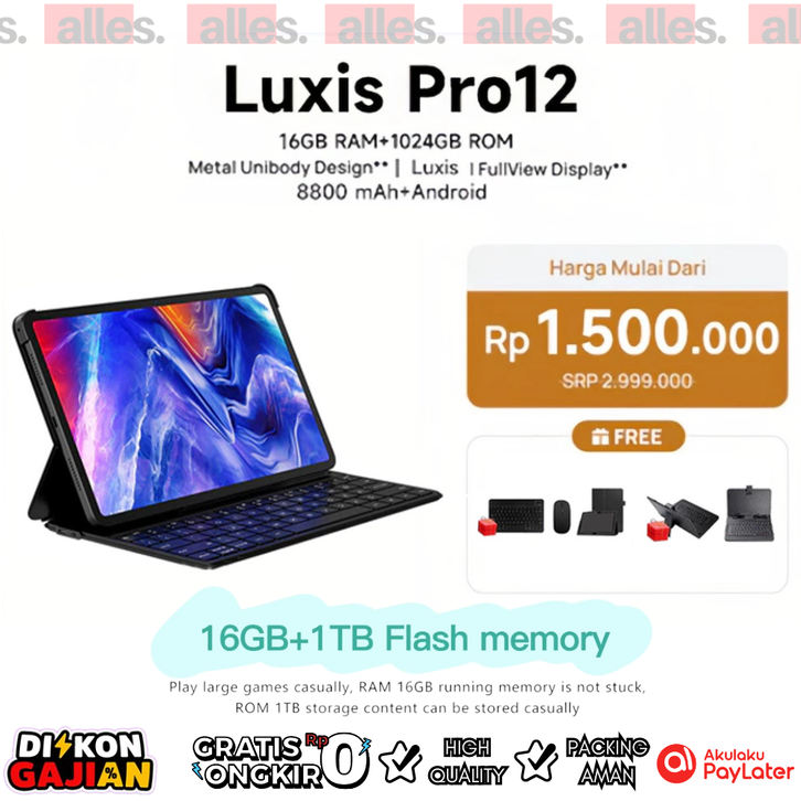 Luxis Tablet Pro12 (16GB+1024GB)11.6inch"lPS Screen Android 12 8800 mAh Dual Sim Card Advan Murah Anak ipad gen 10 11