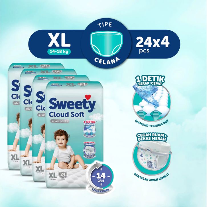 Paket 4 BALL Sweety Silver Pants NB S40 S38 M32 L28 XL24 XXL22 POPOK CELANA X 2 PCS