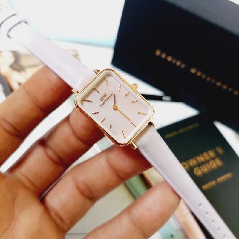 JAM TANGAN WANITA DANIEL WELLINGTON DW Quadro LAVENDER LEATHER - FREE BOX FREE ONGKIR