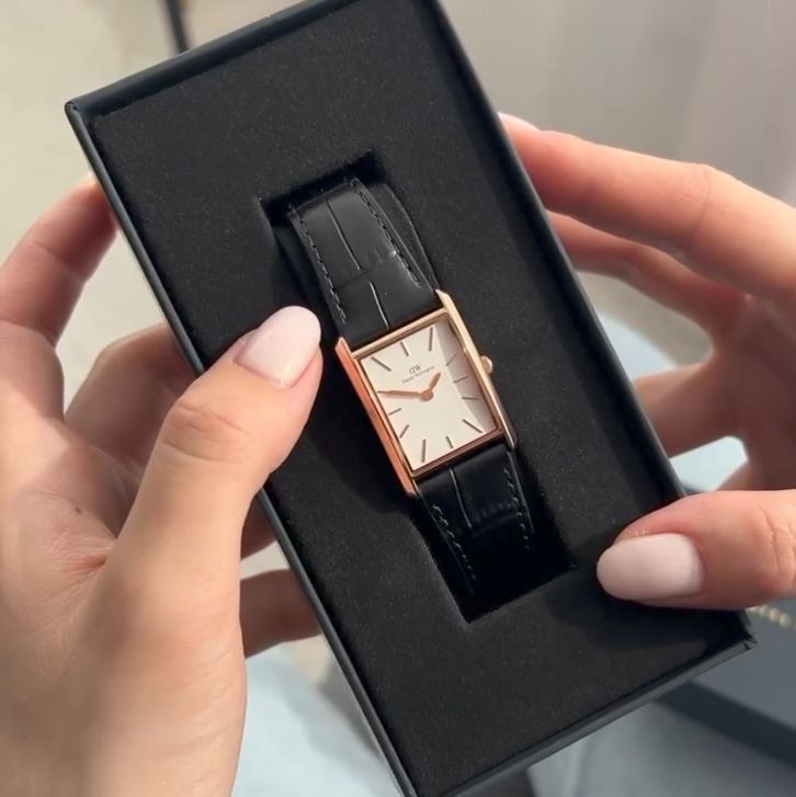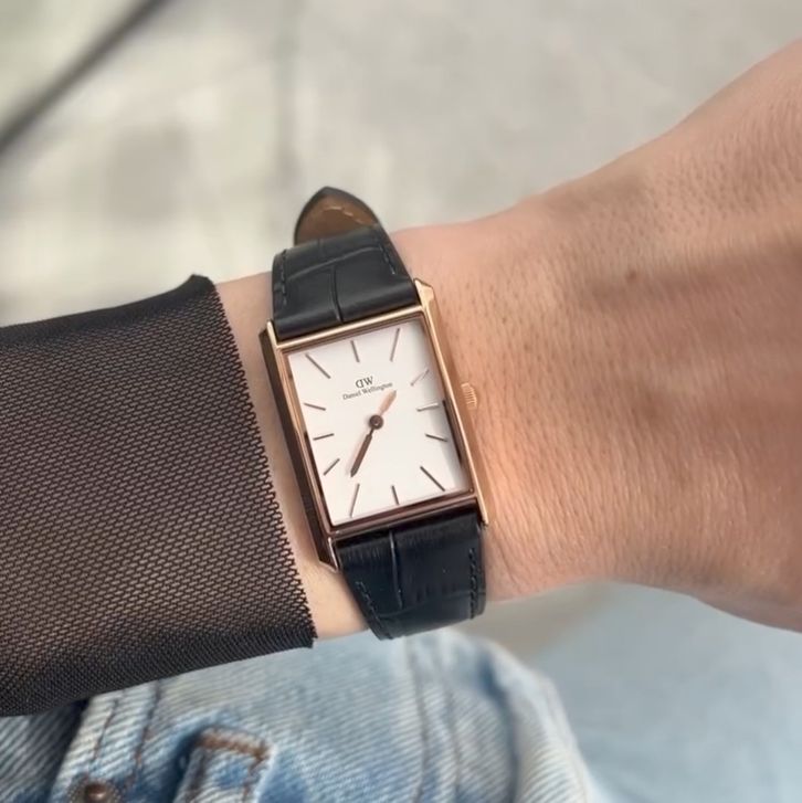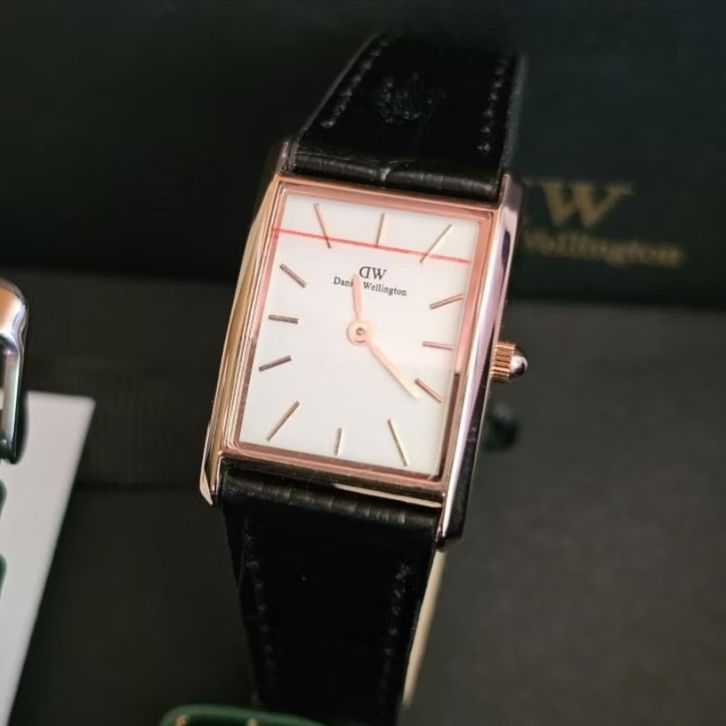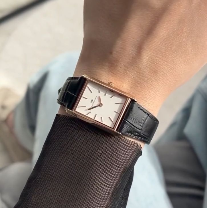 JAM TANGAN WANITA DANIEL WELLINGTON DW Bound Croco Square ROSEGOLD BLACK DIAL WHITE LEATHER - FREE BOX FREE ONGKIR