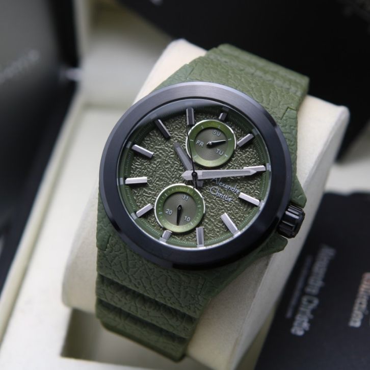 Jam Tangan Pria Alexandre Christie AC 6585 / AC6585 RUBBER Black Green - ORIGINAL Garansi Resmi 1 Tahun