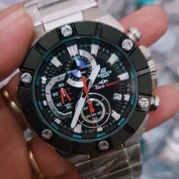 JAM TANGAN PRIA CASIO EDIFICE EFR-569 TORO ROSSO SILVER BLACK FREE BOX