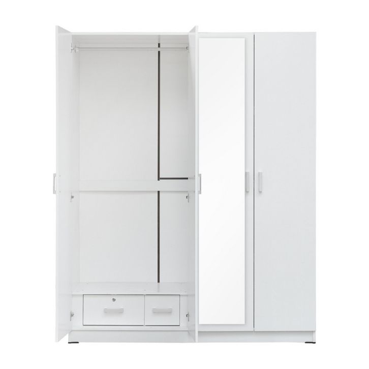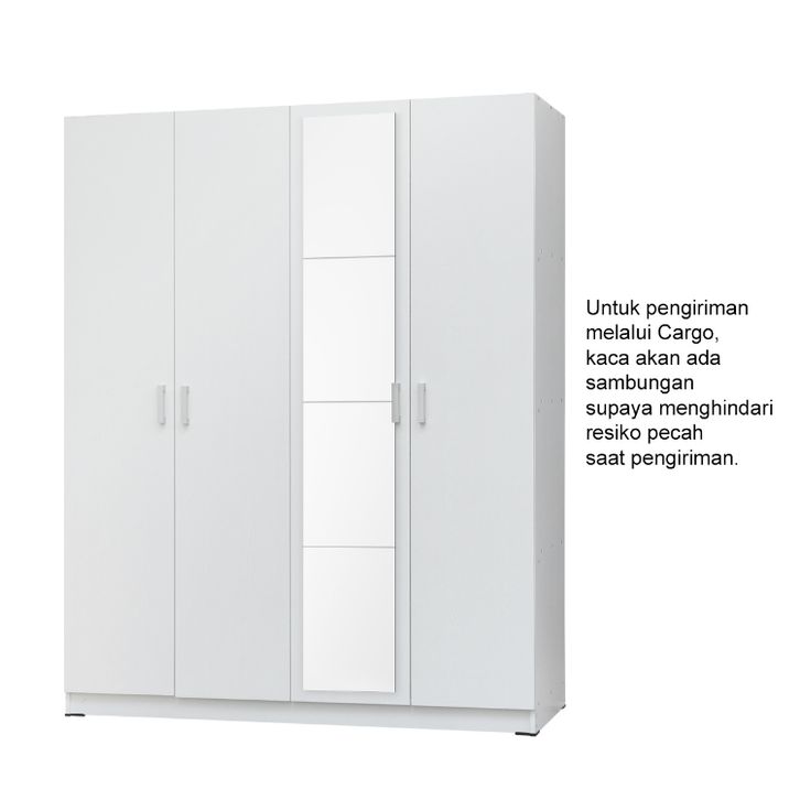FULL KAYU - FREE JAWA Kirana Lemari Pakaian / Lemari Baju 4 Pintu Modern Besar Minimalis Madison + Kaca Cermin
