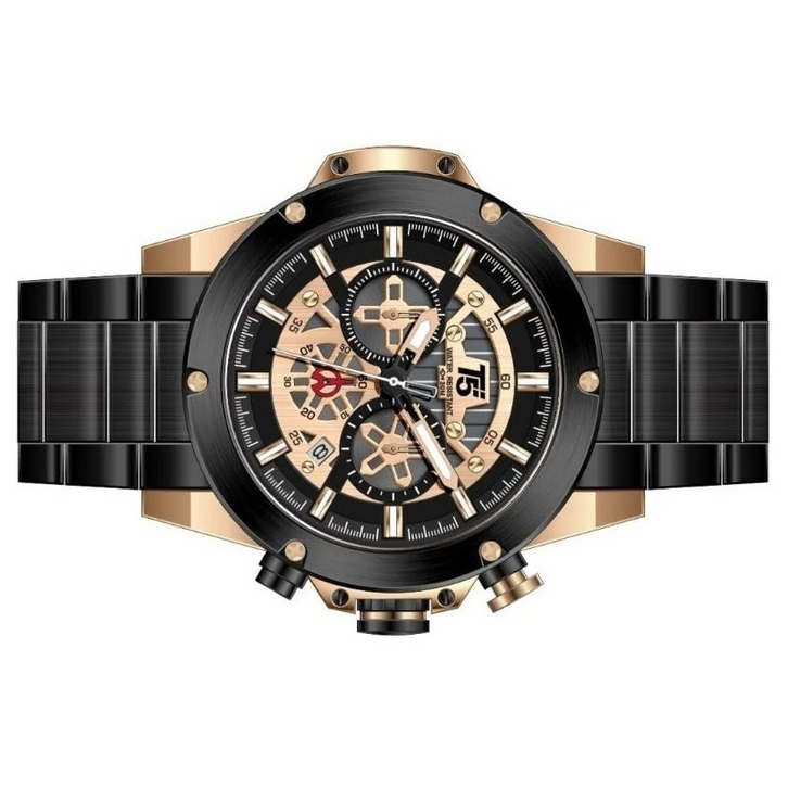 Jam Tangan Pria T5 H 4030 BLACK ROSEGOLD Original Chronograph Bergaransi-Free tin box