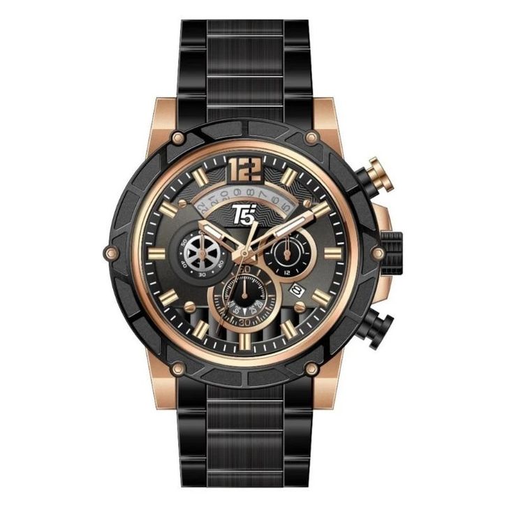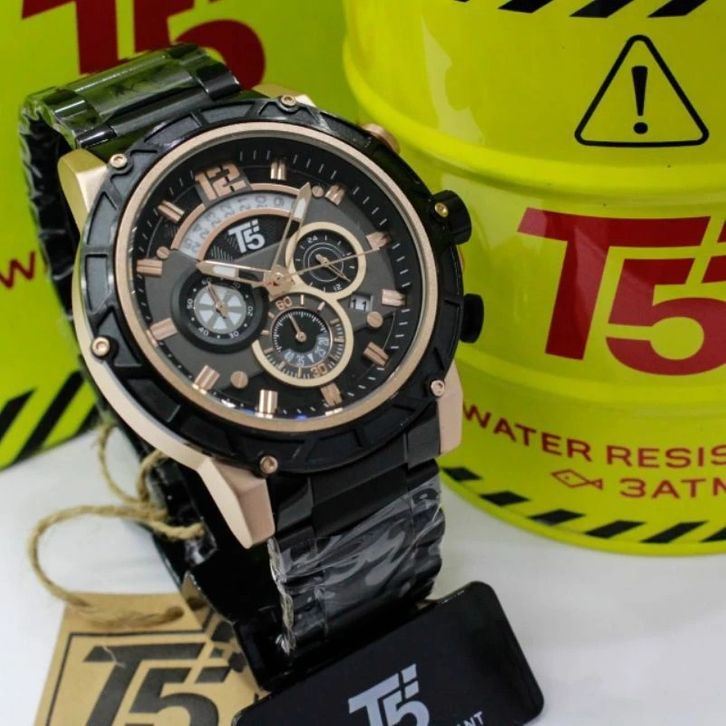 Jam Tangan Pria T5 H 3813 BLACK ROSEGOLD Original Chronograph Bergaransi-Free tin box